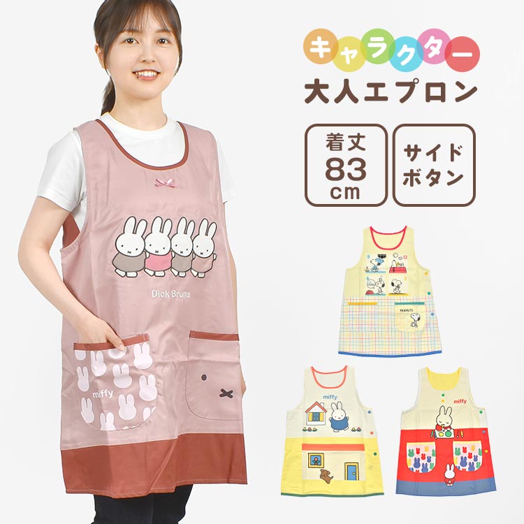 ※画像クリックで拡大出来ます キャラクター名 スヌーピー/SNOOPY/PEANUTS/ミッフィー/miffy 商品名 大人エプロン 商品番号 0406015/0406029/0406030/0406031/0406032/0406034/0406035/0406036 サイズ フリーサイズ 着丈約82cm、身幅約54cm、裾幅約65cm ※平置き採寸です。